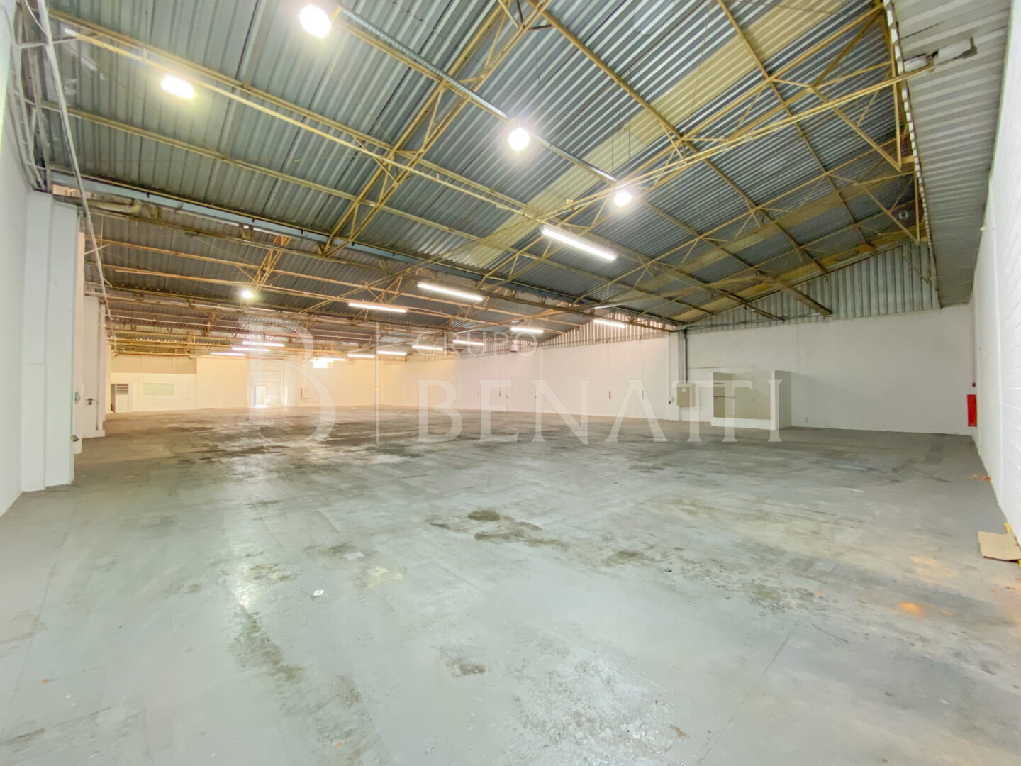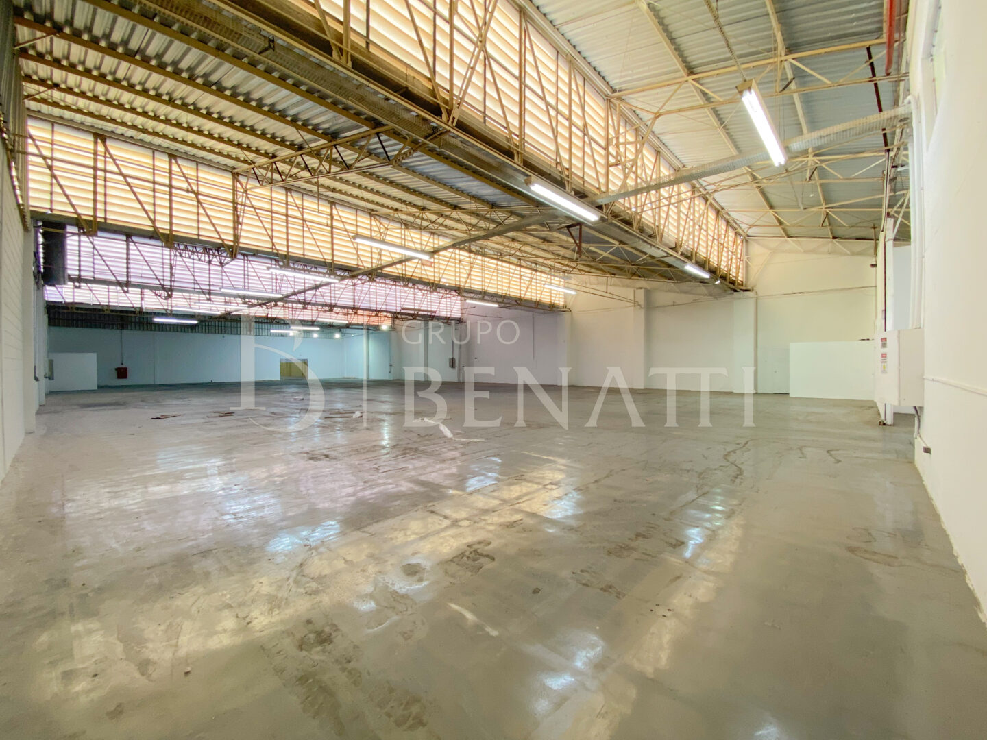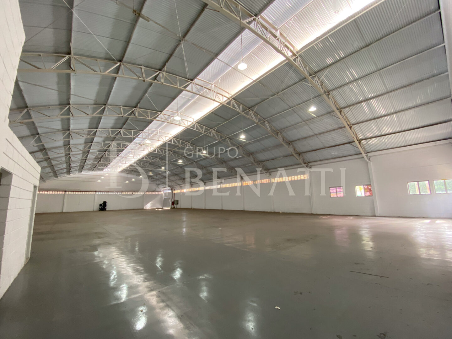 Galpão conta com uma área útil de 1.200m² e oito vagas de garagem.